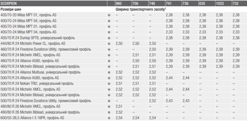 - Максимальний розмір шин: 600/55-26.5