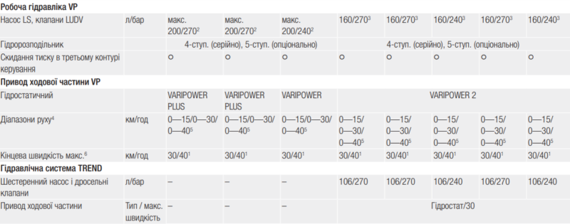 - Безступінчатий гідростатичний привод ходової частини VARIPOWER PLUS / VARIPOWER із вдосконаленою функцією SMART ROADING